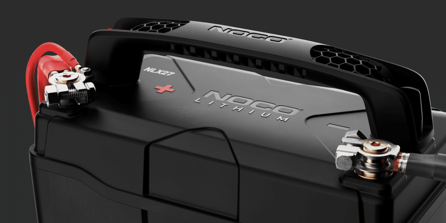Introducing the all-new NOCO Lithium NLX27 12V Lithium-Ion LiFePO4 Dual-Purpose Battery, a Group 27 battery, rated at 100Ah (1280Wh) with 1400-amps of starting power. It’s better than lead-acid in almost every way. No sulfation, lighter in weight, higher starting power, and more usable capacity.